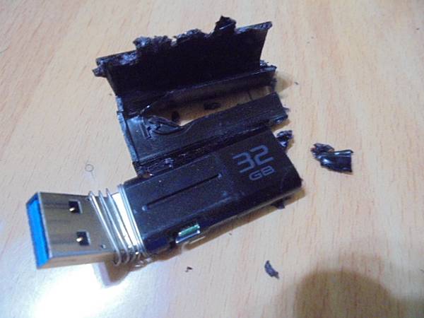 【檔案都在】SONY索尼32GB~USM-P隨身碟USB 3.0插在LENOVO聯想筆記型電腦使用→孩子不慎將筆電與隨身碟由桌面上摔落~折彎USB接頭無法使用~要救出工作資料~推測隨身碟因遭撞擊USB接頭導致針腳斷裂→桃園市觀音區-鄭小姐【未傷及電路板】 【更換接頭】SONY索尼USM-P→32GB隨身碟USB 3.0插在LENOVO聯想筆記型電腦使用~孩子不慎將筆電與隨身碟由桌面上摔落→折彎USB接頭無法使用~要救出工作檔案→將撞歪的隨身碟放於桌面上俯視~桃園市觀音區-鄭小姐【USB接頭遭折彎約70度角】