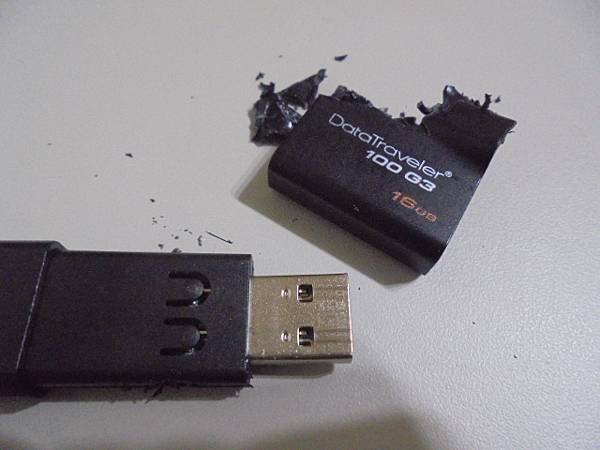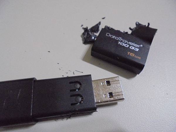 【剪開外殼】Kingston金士頓DT100G3~USB 3.0隨身碟16GB插在公司的PC讀取→被撞歪接頭無法過電使用~網路找到我的維修救援案例→要救出重要的工作檔案資料~取工具小心剪開伸縮機構外殼→新北市新莊區-范小姐【電路板被伸縮機構內殼包覆】