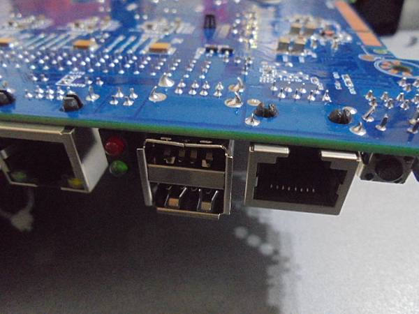 【拆殼檢測】大陸品牌1U網路電腦主機~於安裝時弄斷機殼前置USB裏的塑膠片→導致無法連接鍵盤滑鼠~整部網路電腦主機沒辦法操作→要更換USB接座再使用設備~將主機板由機殼取出後翻至背面→臺北市中華路-吳先生【檢視USB接座12個DIP焊點】