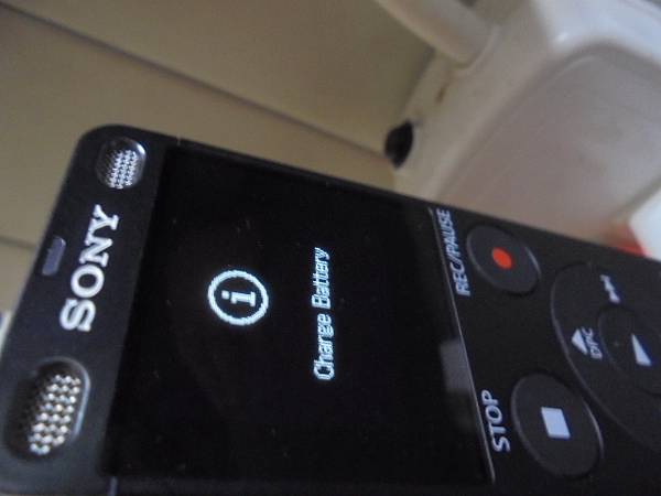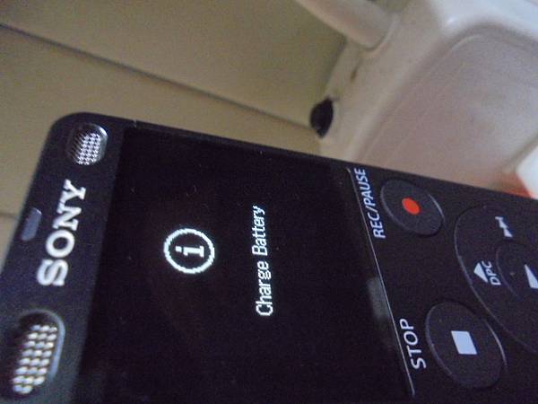 【已在樓下】SONY索尼ICD-UX560F→4GB錄音筆家人使用後就放口袋~在洗衣機洗過後錄音筆無法充電與開機→放了一年沒送修已過原廠保固~已修復錄音筆的水漬問題→錄音筆USB接頭插上DC充電器~新北市板橋區-羅先生【螢幕顯示Charge Battery】
