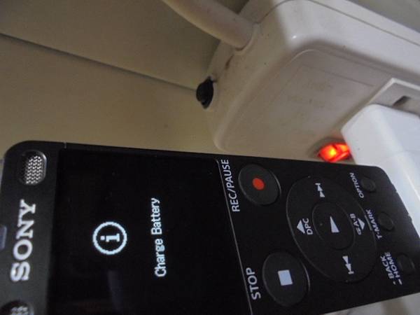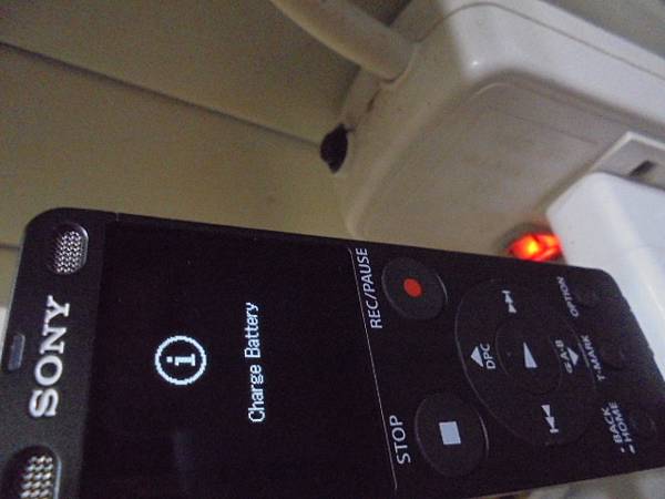【已在樓下】SONY索尼ICD-UX560F→4GB錄音筆家人使用後就放口袋~在洗衣機洗過後錄音筆無法充電與開機→放了一年沒送修已過原廠保固~已修復錄音筆的水漬問題→錄音筆USB接頭插上DC充電器~新北市板橋區-羅先生【螢幕顯示Charge Battery】