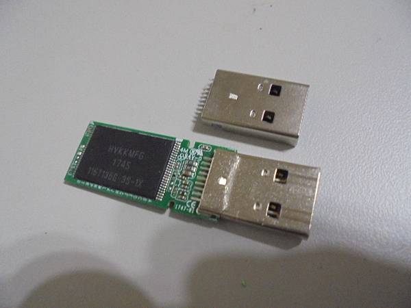 【剪開外殼】Kingston金士頓DT100G3~USB 3.0隨身碟16GB插在公司的PC讀取→被撞歪接頭無法過電使用~網路找到我的維修救援案例→要救出重要的工作檔案資料~將隨身碟電路板翻至背面→新北市新莊區-范小姐【目視主控晶片針腳有輕微的損傷】
