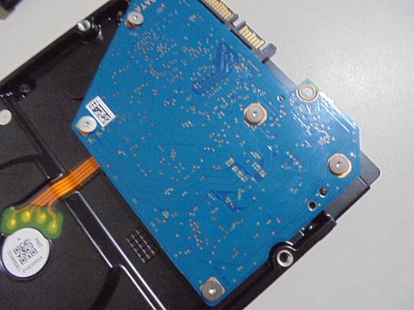 【0403地震】WD威騰6TB裸碟3.5吋→裸碟當資料碟插入硬碟座讀取使用~平時放在一米高度的桌面→0403地震時由桌面掉落地毯的地面上~導致7Pin接口塑膠片折壞→把WD威騰6TB裸碟3.5吋藍標電路板翻回背面~新北市中和區-林先生【對準5個螺絲孔位】