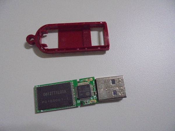【修復救出】SP廣穎LuxMini 320→32GB隨身碟先前均正常讀取~被踢到後讀不到USB裝置但有亮紅燈→Rutun找到我的維修救援記錄~要救回隨身碟裏的重要工作檔案→將SP廣穎隨身碟電路板由機構框裏拉出~金門縣金湖鎮-黃小姐【正面背面零件無缺】