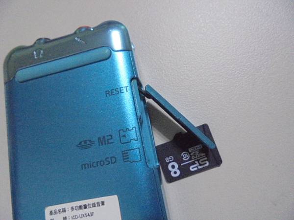 【排線斷裂】SONY索尼ICD-UX543F~4GB錄音筆是課程錄音→使用多年後錄音筆無法充電無法傳輸~螢幕字體模糊到看不見→影響到工作的需求~想救出錄音筆的音檔→錄音筆再翻至背面拉開記憶卡保護蓋~臺北市莊敬路-薛小姐【抽出SP廣穎8GB記憶卡】