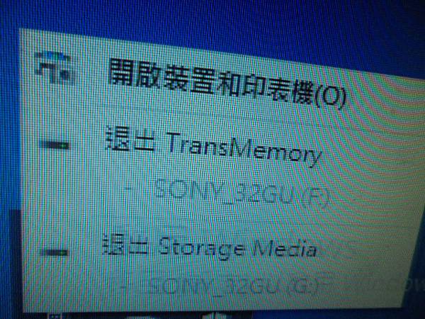 【雙碟對拷】SONY索尼USM-P→32GB隨身碟USB 3.0插在LENOVO聯想筆記型電腦使用~孩子不慎將筆電與隨身碟由桌面上摔落→折彎USB接頭無法使用~已救出工作檔案→安全移除硬體退出媒體~桃園市觀音區-鄭小姐【TransMemory(F)Storage Media(G)】