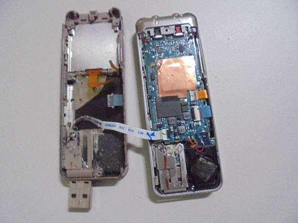 【拆殼判定】SONY索尼ICD-UX543F~4GB錄音筆是課程錄音→使用多年後錄音筆無法充電無法傳輸~螢幕字體模糊到看不見→影響到工作的需求~想救出錄音筆的音檔→將SONY索尼ICD-UX543F錄音筆平放滑動POWER鍵~臺北市莊敬路-薛小姐【開不了機】