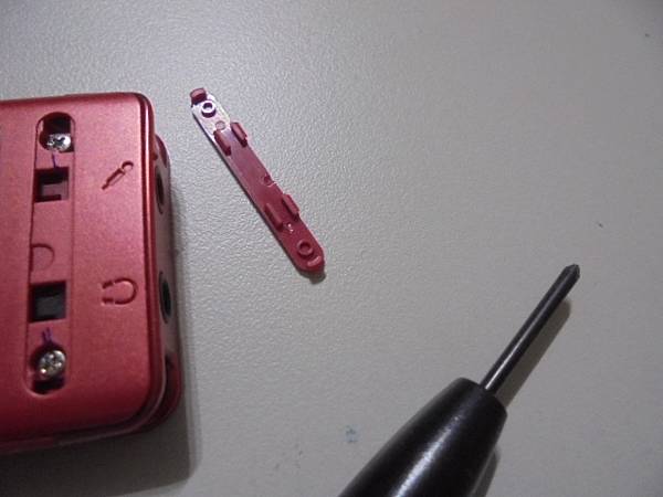 【初步判定】FOSTER自行車2GB音樂棒MicroAmp→家人先前均是使用正常~某次充飽電後無法開機→接上電腦有亮充電燈可以讀到這個裝置~要修好這隻迷你微型音響→固定音樂棒控制板的2顆十字螺絲~臺北市芝玉路-陳先生【以十字起子依序鬆開取出】
