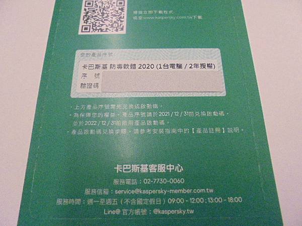 【防毒軟體】ASUS華碩U31S筆記型電腦→用來做線上學習卻無法登入Yahoo雅虎奇摩WebMail郵件~確認登入Yahoo雅虎奇摩信箱正確→提醒客戶必需安裝防毒軟體使用~Kaspersky防毒軟體紙卡→新北市板橋區-吳小姐【卡巴斯基2020(1台電腦/2年授權)】