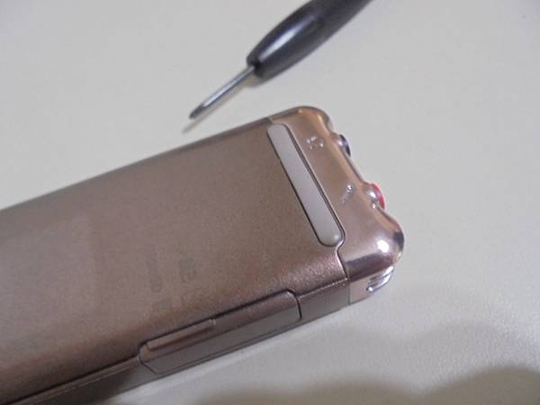 【騎車送測】SONY索尼ICD-UX543F→4GB錄音筆已使用多年~錄音筆目前無法充電無法傳輸檔案→錄音筆仍相當好用不捨得更換~同意改成Micro USB接座充電與傳輸→手指挖開錄音筆背蓋上的防滑膠條~桃園市中壢區-簡小姐【由背蓋上拉出防滑膠條】