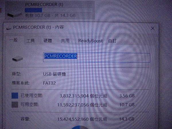 【完修取回】SONY索尼PCM-A10~16GB高階錄音筆因工作需求購買→錄音筆每天均工作上要使用~USB連接電腦讀取音檔時損壞功能均失效→已修好錄音筆可以正常使用~PCMRECORDER(I:)剩餘10.7GB共14.3GB→新北市三重區-洪先生【已使用空間3.56GB】
