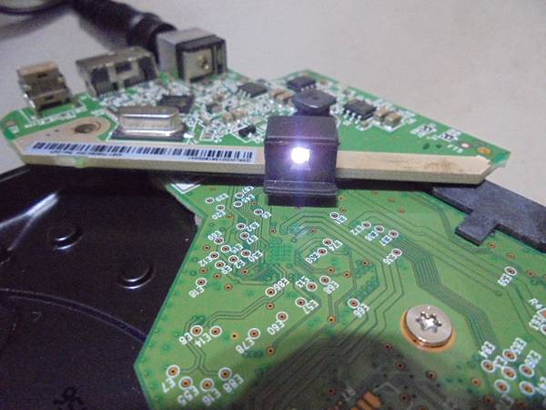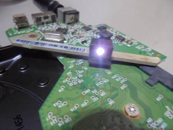 【拆殼檢測】WD威騰Elements Desktop→6TB外接式硬碟USB 3.0先前連接電腦正常使用~突然故障後讀不到磁區→網路找到我有救援經驗~要救回硬碟裏的工作檔案→開啟110V電壓~新北市板橋區-呂先生【WD威騰Elements Desktop轉接電路板亮通電燈】