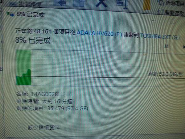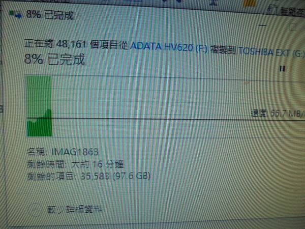 【螞蟻白卵】ADATA威剛2TB~HV620外接式硬碟是友人贈送已很久沒使用→突然發現有很多螞蟻從傳輸線孔跑進跑出~檢測後確認硬碟好的→購買新硬碟複製檔案資料~8%已完成大約16分鐘→新北市板橋區-林小姐【8%已完成剩餘的項目35749(97.4GB)】 【拆殼嚇壞】ADATA威剛HV620→2TB外接式硬碟是友人贈送已很久沒使用~突然發現有很多螞蟻從傳輸線孔跑進跑出→檢測後確認硬碟是OK~已清理解決螞蟻存在問題→0%已完成大約2小時又5分鐘~新北市板橋區-林小姐【從HV620(F)到TOSHIBA EXT(G)】