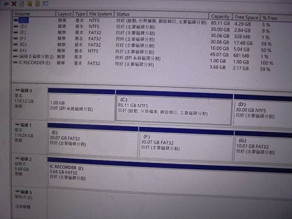 【快遞送測】SONY索尼ICD-UX543F→4GB錄音筆是課程錄音~使用多年後錄音筆無法充電無法傳輸→螢幕字體模糊到看不見~影響到工作的需求→想修好錄音筆再使用~滑鼠點進存放裝置磁碟管理→臺北市莊敬路-薛小姐【磁碟區IC RECORDER(I:)FAT32】
