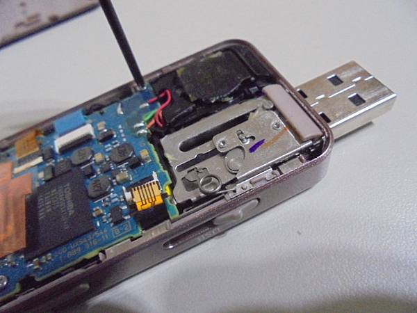 【拆殼判定】SONY索尼ICD-UX543F→4GB錄音筆已使用多年~錄音筆目前無法充電無法傳輸檔案→錄音筆仍相當好用不捨得更換~同意改成Micro USB接座充電與傳輸→拔出頂部機構件取十字起子鬆開錄音筆電路板固定螺絲~桃園市中壢區-簡小姐【取出】