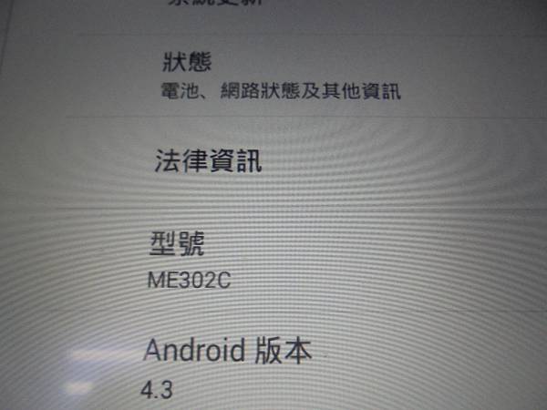 【外觀無損】ASUS華碩ME302C~MeMO Pad平板電腦16GB→平板電腦無法開機已經損壞多年~問很多人拆都沒拆就說無法維修→已修好平板電腦當監視系統的監控設備~設定選項裏下滑到關於平板電腦→新北市板橋區-王小姐【關於平板電腦>型號ME302C】