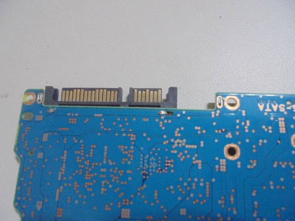 【完修取回】TOSHIBA東芝3.5吋8TB~企業級硬碟為雙11購買→拆封新品插拔時不慎折斷SATA電源接口15Pin塑膠片~導致無法使用新硬碟→已更換SATA接座再做使用~將電路板翻至背面→臺北市中正區-熊先生【目視全新公規代用SATA接座接點無異常】