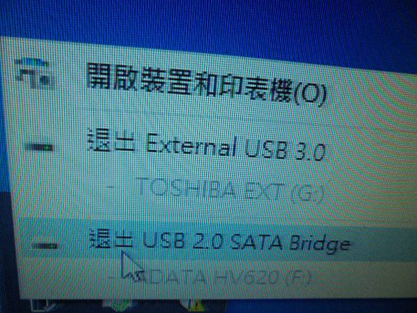 【雙碟複製】ADATA威剛HV620→2TB外接式硬碟是友人贈送已很久沒使用~突然發現有很多螞蟻從傳輸線孔跑進跑出→檢測後確認硬碟是OK~已清理解決螞蟻存在問題→點選退出USB 2.0 SATA Bridge~新北市板橋區-林小姐【可以從電腦中移除USB裝置】