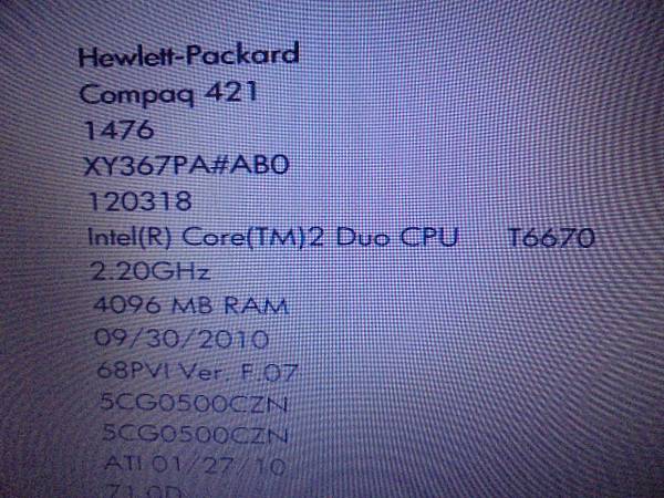 【更換硬碟】HP惠普Compaq康柏421筆記型電腦HSTNN-185C-4→NB使用多年感覺開機關機速度都變慢~筆電的使用效能也變差→要更換成SSD固態硬碟提升速度與效能~ROM Date 09/30/2010→新北產業園區-陳先生【ROM Revision 68PVI Ver.F.07】