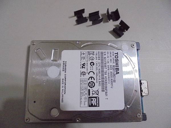 【讀取正常】TOSHIBA東芝1TB外接式BASICS硬碟A1~不慎壓到未拔除的傳輸線導致Micro USB 3.0接座脫落→無法讀取HDD硬碟→已救出行動硬碟儲存的工作檔案資料~將硬碟本體往前推再取原廠橡膠墊→新北市板橋區-陳先生【塞進硬碟上蓋裏的縫隙】