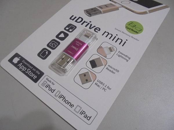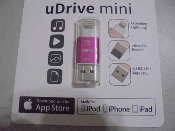 【選桃紅色】Tekq樂都uDrive mini讀卡機→Apple蘋果Lightning專用~iPhone X手機裏儲存太多照片影片檔案→導致手機使用會卡卡的~推薦使用iOS讀卡機備份檔案→Made For iPod iPhone iPad~新北市板橋區-吳小姐【Download on the App Store】