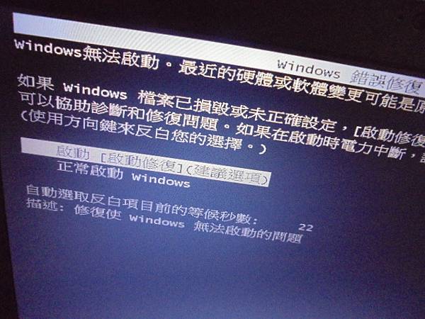 【貨運寄達】HP惠普Compaq康柏421筆記型電腦HSTNN-185C-4→NB使用多年感覺開機關機速度都變慢~筆電的使用效能也變差→要更換成SSD固態硬碟提升速度與效能~Windows錯誤修復/選項/光棒在啟動→新北產業園區-陳先生【移至正常啟動Windows】