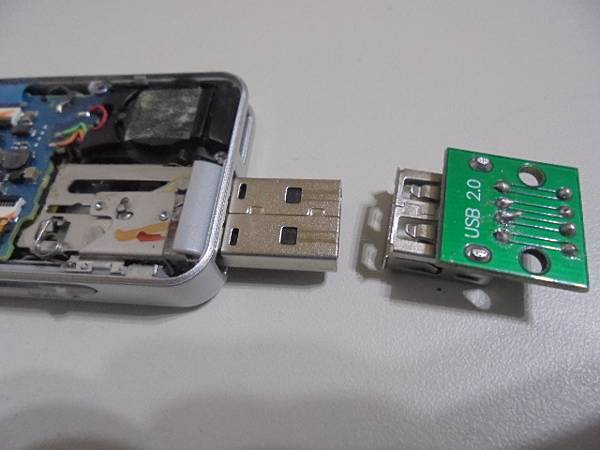 【下班送測】SONY索尼ICD-UX543F→4GB錄音筆連接電腦讀不到裝置~無法傳輸檔案亦無法充電→錄音筆已經耗完電量無法開機~想修好USB無法充電與無法傳輸問題→同客戶已確認USB排線斷裂點是+5V位置~臺北市仁愛路-吳先生【拔出USB母座電路板】
