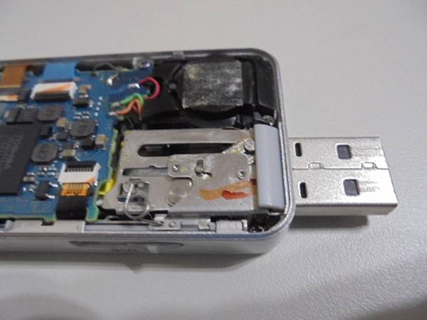 【拆殼判定】SONY索尼4GB~ICD-UX543F錄音筆連接電腦讀不到裝置→無法傳輸檔案亦無法充電~錄音筆已經耗完電量無法開機→想修好USB無法充電與無法傳輸問題~以左手姆指拉回SONY索尼ICD-UX543F錄音筆→臺北市仁愛路-吳先生【的A型USB公頭】