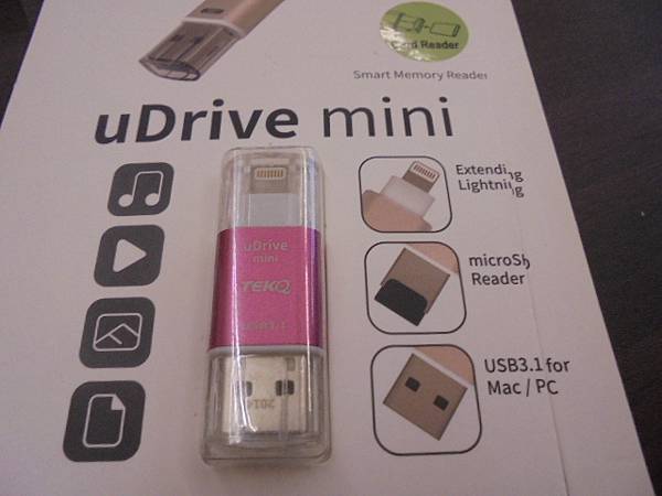 【選桃紅色】Tekq樂都uDrive mini讀卡機→Apple蘋果Lightning專用~iPhone X手機裏儲存太多照片影片檔案→導致手機使用會卡卡的~推薦使用iOS讀卡機備份檔案→由uDrive mini原廠吊卡包裝~新北市板橋區-吳小姐【拉出透明Tray/桃紅色讀卡機】