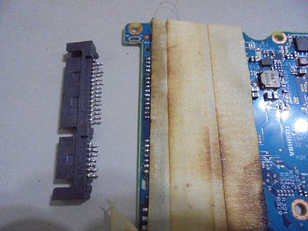 【磨開機構】TOSHIBA東芝8TB→3.5吋企業級硬碟為雙11購買~拆封新品插拔時不慎折斷SATA電源接口15Pin塑膠片→導致無法使用新硬碟~已更換SATA接座繼續使用→硬碟電路板貼好保護膠帶~臺北市中正區-熊先生【取工具拆下剛換好的SATA代用接座】
