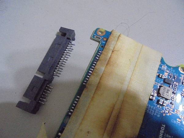 【SATA接座】三個品牌2TB/4TB硬碟九顆→3.5吋裸碟裝在電腦使用~更換插拔時將SATA電源接口15Pin/7Pin塑膠片折斷→導致硬碟無法存取~已更換SATA接座再使用→花費半小時的工時拆離TOSHIBA原廠SATA接座~新北市樹林區-王先生【22隻針腳完整】