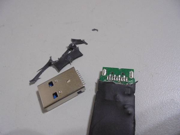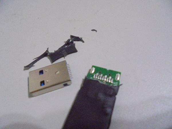 【撞斷接頭】Transcend創見810~128GB隨身碟USB 3.0插在PC讀取使用→自己不慎踢斷USB接頭導致無法讀取~USB 3.0接頭折斷掉落→想救回隨身碟的重要檔案資料~由橡膠外殼中拉出隨身碟電路板→臺北市承德路-陸先生【電路板被熱縮套管包覆住】 【立即送修】Transcend創見810→128GB隨身碟USB 3.0插在桌上型電腦使用~不慎踢斷USB接頭導致無法讀取→USB 3.0接頭折斷掉落~想救回隨身碟裏重要檔案資料→需檢測隨身碟電路板損壞情況~臺北市承德路-陸先生【需設法拉出隨身碟橡膠外殼】