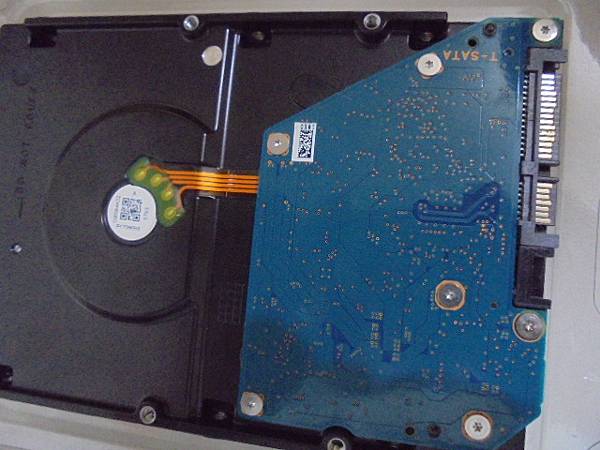 【更換接座】TOSHIBA東芝3.5吋~4TB裸碟為公司資料碟→插拔時不慎折斷SATA電源接口15Pin塑膠片~導致無法存取動態磁碟檔案資料→已更換SATA接座可使用裸碟~將TOSHIBA東芝4TB裸碟3.5吋翻至背面→桃園市龜山區-柯先生【置進裝來的透明膠盒】
