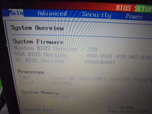 【帶回維修】ASUS華碩F5RL~Notebook筆記型電腦無法開機已經損壞多年→問過幾個人測都沒測拆都沒拆就說無法維修~要修復NB筆記型電腦當監視系統的監控設備→按F2鍵進入BIOS的Main選項→新北市板橋區-王小姐【Intel Core 2 Duo CPU T5450】