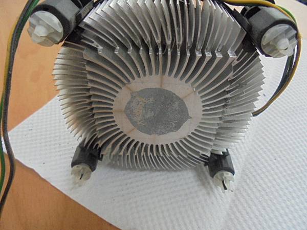 【換新硬碟】ASUS華碩P5KPL-CM主機板~網路Server儲存公司重要檔案→已刪除很多檔案硬碟容量仍不足~網路搜尋到我的相關案例→要解決硬碟空間不夠使用問題~取刷子清理CPU風扇上的灰塵髒汙→臺北市忠孝東路-林小姐【CPU風扇底部一併清理】