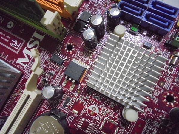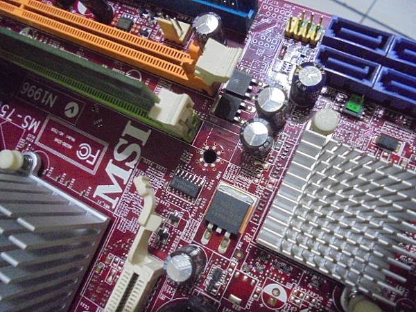 【去臺中載】MSI微星MS-7528→G31M3-F主機板使用多年從未關過機~臺中市分公司的PC主機→電腦使用中異常拆殼檢查發現電解電容突起~要更換電容繼續使用主機→南橋晶片周邊有4顆突起電容~新北市板橋區-林先生【記憶體插槽旁邊1顆突起電容】