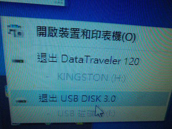 【完修寄還】Kingston金士頓DataTraveler 120~16GB隨身碟插在PC前置USB接座讀取→不慎撞歪USB接頭導致損壞~導致無法過電讀取→已救出重要的Excel班表檔案~點USB符號安全地移除硬體並退出媒體→臺中市西屯區-黃先生【兩個USB裝置的視窗】