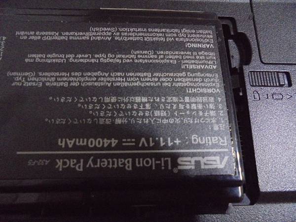 【拆出硬碟】ASUS華碩F5RL~Notebook筆記型電腦無法開機已經損壞多年→問過幾個人測都沒測拆都沒拆就說無法維修~要修復NB筆記型電腦當監視系統的監控設備→拆出原廠電池ASUS LiIon Battery Pack~新北市板橋區-王小姐【+11.1V 4400mAh】 【損壞多年】ASUS華碩F5RL→Notebook筆記型電腦無法開機已經損壞多年~問過幾個人測都沒測拆都沒拆就說無法維修→要修復NB筆記型電腦當監視系統的監控設備~蓋上ASUS筆記型電腦螢幕後翻至背面→新北市板橋區-王小姐【將電池固定開關往右撥】