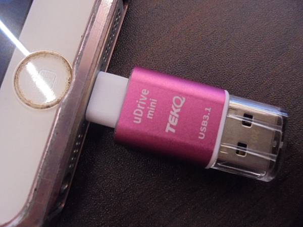 【推薦使用】Tekq樂都uDrive mini讀卡機→Apple蘋果Lightning專用~iPhone X手機裏儲存太多照片影片檔案→導致手機使用會卡卡的~推薦使用iOS讀卡機備份檔案→適用於此配件iPhone 5手機~新北市板橋區-吳小姐【uDrive for TEKQ點藍色開啟】