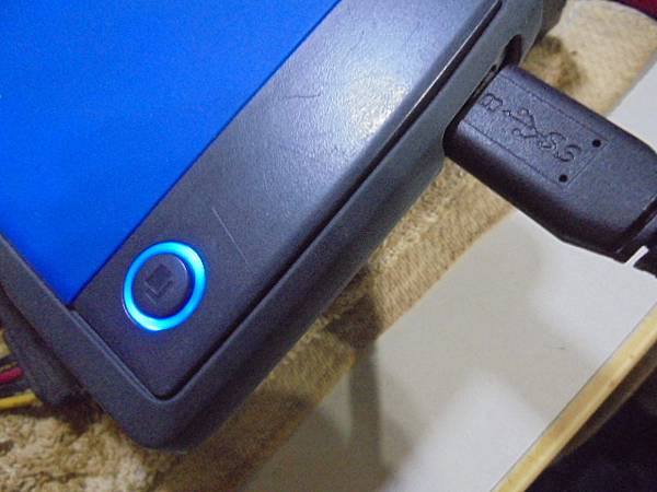 【測試裸碟】Transcend創見StoreJet 25H3B→1TB外接硬碟USB 3.1連接公司的電腦使用~突然讀不到這顆硬碟→測試USB 3.0傳輸線正常~要救出硬碟裏的工作檔案→將USB 3.0傳輸線連接主機板~新北市中和區-吳先生【Transcend創見硬碟亮通電藍燈】