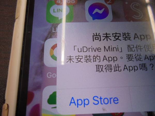 【快速備份】Tekq璿驥uDrive mini讀卡機~Apple蘋果Lightning專用→iPhone X手機裏儲存太多照片影片檔案~導致手機使用會卡卡的→購買使用iOS讀卡機備份檔案~尚未安裝App要從App Store取得此App嗎?→新北市板橋區-吳小姐【點App Store】