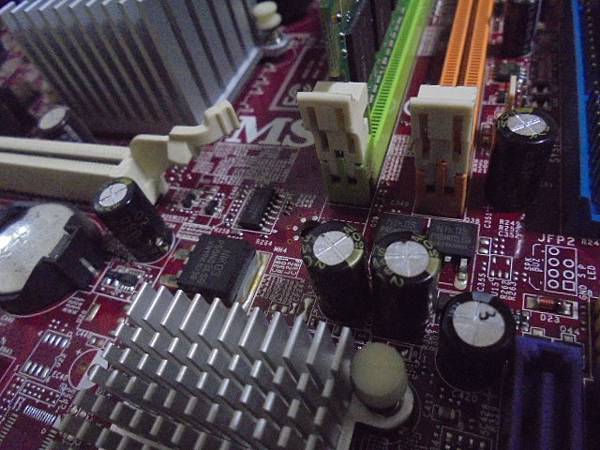 【回板橋換】MSI微星G31M3-F~MS-7528主機板使用多年從未關過機→臺中市分公司的PC主機~電腦使用中異常拆殼檢查發現電解電容突起→已更換電容繼續使用主機~將焊妥5顆電解電容的MSI微星MS-7528主機板→新北市板橋區-林先生【置進機殼內】