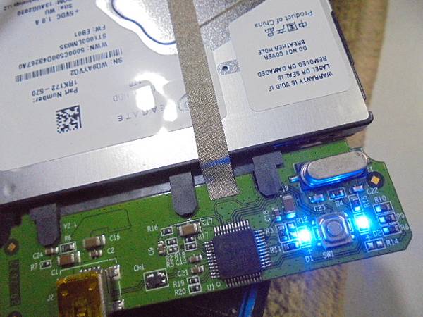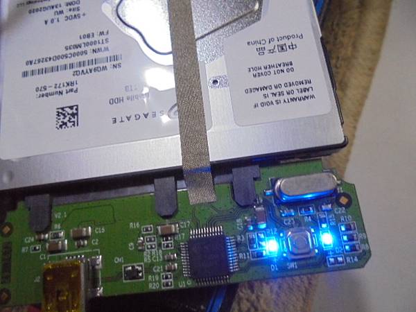 【接座搖晃】Transcend創見StoreJet 25H3B→1TB外接硬碟USB 3.1連接公司的電腦使用~突然讀不到這顆硬碟→測試USB 3.0傳輸線正常~要救出硬碟裏的工作檔案→一經通電SEAGATE裸碟2.5吋1TB的轉接板~新北市中和區-吳先生【已亮通電讀取藍燈】