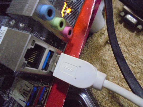 【電話約定】WD威騰My Passport→4TB外接式硬碟USB 3.0連接電腦讀取~Windows讀不到WD行動硬碟的磁碟區→外接硬碟通電發出異音~想救回公司重要的檔案資料→將紅色Micro USB 3.0傳輸線~新北市板橋區-陳小姐【接上技嘉主機板USB 3.0接座】