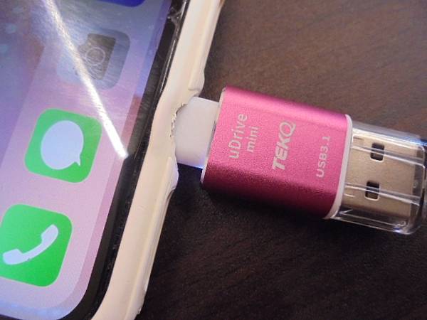 【推薦使用】Tekq樂都uDrive mini讀卡機→Apple蘋果Lightning專用~iPhone X手機裏儲存太多照片影片檔案→導致手機使用會卡卡的~推薦使用iOS讀卡機備份檔案→已由筆記型電腦拔出的uDrive mini讀卡機~新北市板橋區-吳小姐【扣回透明帽蓋】