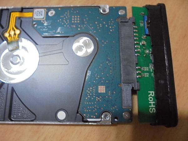 【檔案正確】Transcend創見StoreJet 25H3B→1TB外接硬碟USB 3.1連接公司的電腦使用~突然讀不到這顆硬碟→測試USB 3.0傳輸線正常~已救出硬碟裏的工作檔案→把轉接板套入SEAGATE希捷1TB裸碟~新北市中和區-吳先生【目視裸碟正面背面密合】