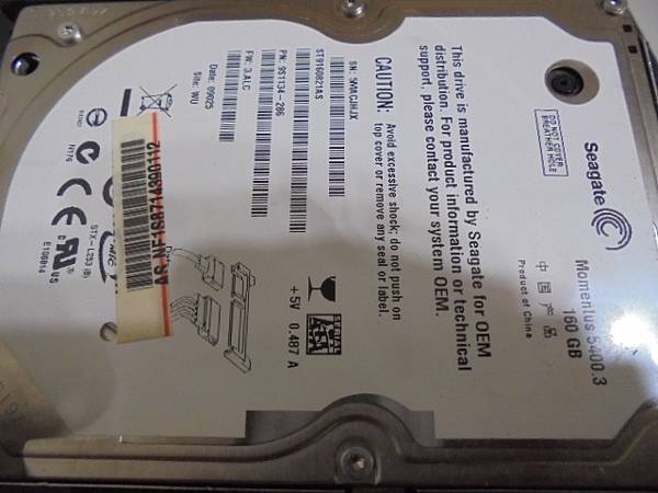 【拆出硬碟】ASUS華碩F5RL~Notebook筆記型電腦無法開機已經損壞多年→問過幾個人並未檢測也未拆機就說無法維修~要修復NB筆記型電腦當監視系統的監控設備→Seagate 160GB SATA 2.5吋5400轉~新北市板橋區-王小姐【貼AS華碩原廠料號標籤】