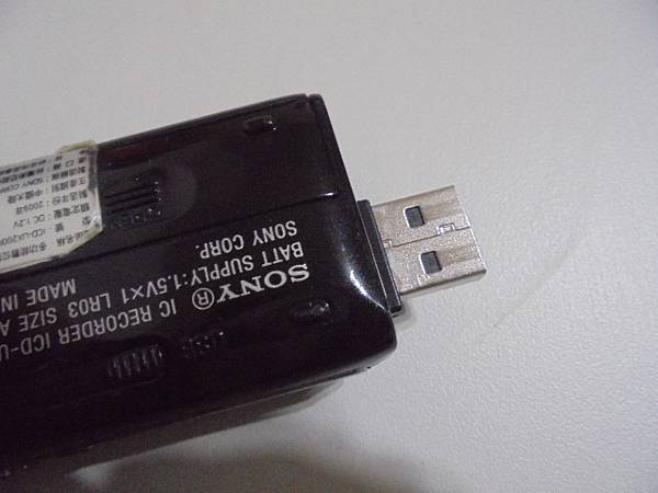 【下班送測】SONY索尼2GB~ICD-UX200F錄音筆是公司淘汰不使用→因USB接頭推出後無法定住會自動縮回~但錄音筆功能正常外觀很佳→要修好USB接頭推出卡住問題~將SONY索尼ICD-UX200F錄音筆翻至背面→新北市板橋區-蘇先生【推出USB接頭很順利】