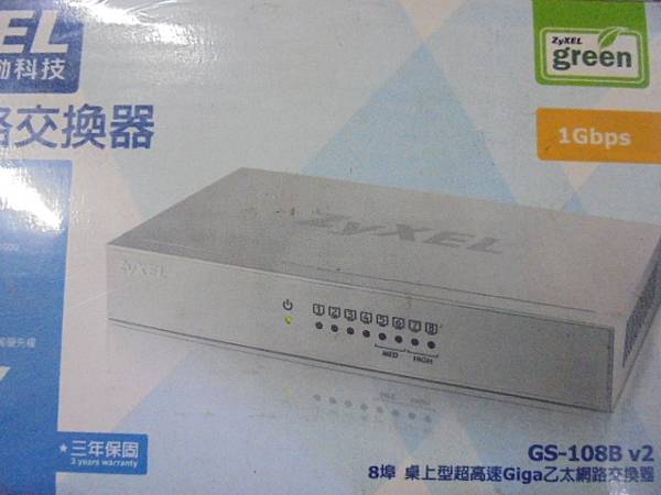 【金屬機殼】ZyXEL合勤GS-108B v2桌上型Giga乙太網路交換器→公司原本使用D-Link友訊DES-1005A網路HUB交換器損壞~因使用上不穩定→必需更換新的網路集線器~ZyXEL合勤科技原廠紙盒側面印有產品規格→臺北市莒光路-劉小姐【客戶採納建議】