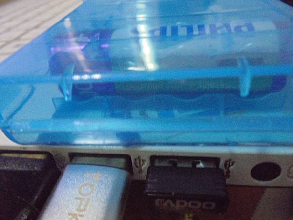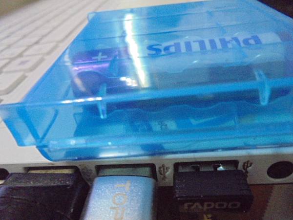 【電池漏液】Rapoo雷柏1860無線光學鍵鼠組→6年前購買PC贈送無線鍵鼠~塵封多年未使用→拆封新品發現電池漏液無法使用無線鍵盤與滑鼠~已解決電池漏液問題→將Rapoo雷柏無線鍵盤的接收器~臺北市艋舺大道-張先生【接上筆記型電腦USB接座】 【處理漏液】Rapoo雷柏1860無線光學鍵鼠組~6年前購買電腦贈送無線鍵鼠→塵封多年未用~拆封新品發現電池漏液無法使用無線鍵盤與滑鼠→已解決電池漏液問題~電池槽裝入PHILIPS飛利浦3號充電電池→臺北市艋舺大道-張先生【確認電池完正接觸】